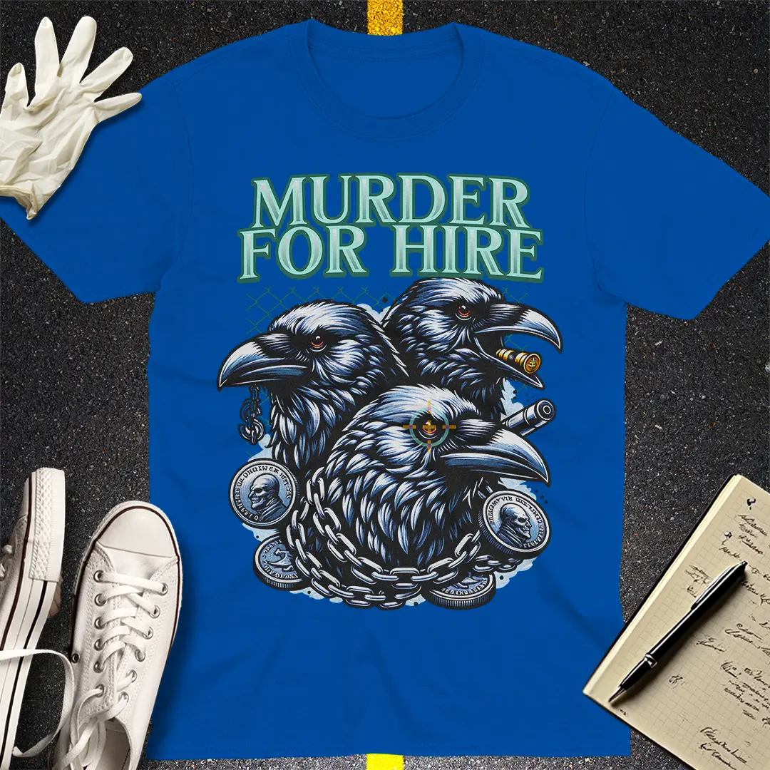 This hauntingly detailed design features a trio of sinister crows, symbolizing mystery, crime, and the underworld. With chains, coins, bullets, and a dark, ominous aesthetic, this shirt makes a bold statement for true crime fans, gothic enthusiasts, and those with a taste for the macabre.