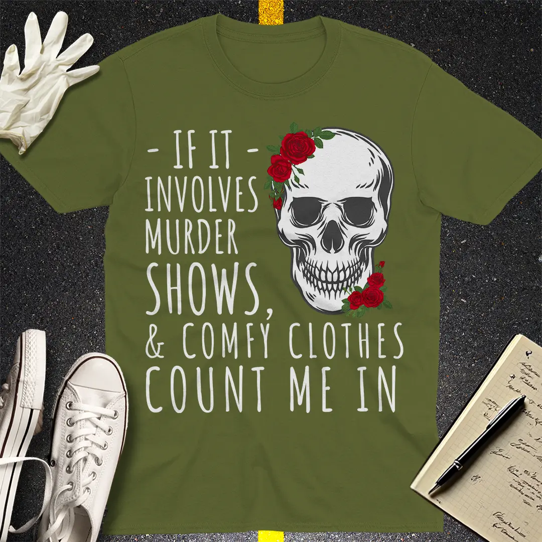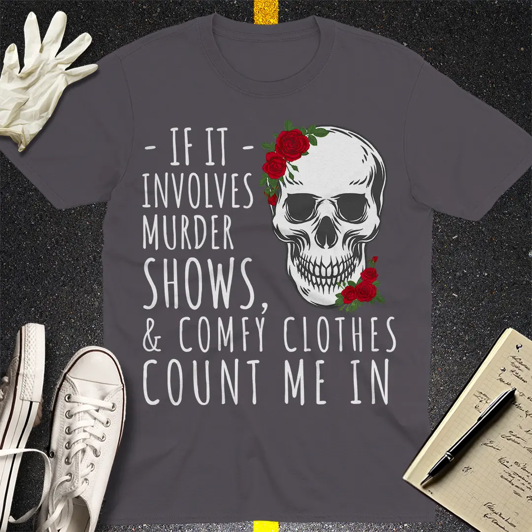 For the true crime lover who enjoys binge-watching murder mysteries in ultimate comfort. This edgy T-shirt featuring a skull and roses is perfect for crime junkies who live for suspense and soft loungewear. Stay cozy, stay spooky!
