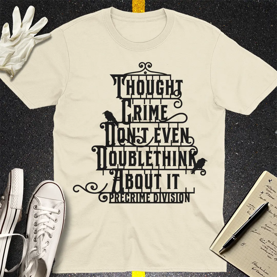 Inspired by dystopian themes and Orwellian concepts, this design boldly comments on surveillance, censorship, and the struggle for free thought. The typography features a stylized prison gate and ominous crows, which convey a dark, gothic atmosphere—ideal for those who challenge authority and cherish intellectual freedom. Perfect for fans of 1984, cyberpunk aesthetics, and thought-provoking dystopian fiction, this shirt is a must-have for rebels, philosophers, and free thinkers.